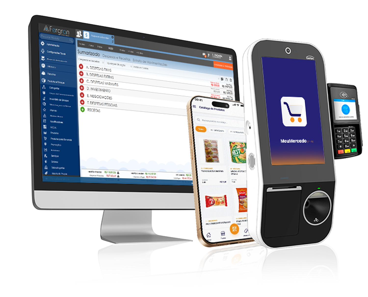 Terminal compacto para operações ágeis, com estrutura enxuta e integração com o ecossistema Meu Mercado.